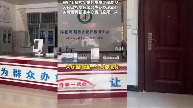 据多家媒体报道,近日,湖南省永州市宁远县一位居民反映,自己前往棉花坪瑶族乡人民政府办事,但上班时间办事大厅内却没有工作人员。